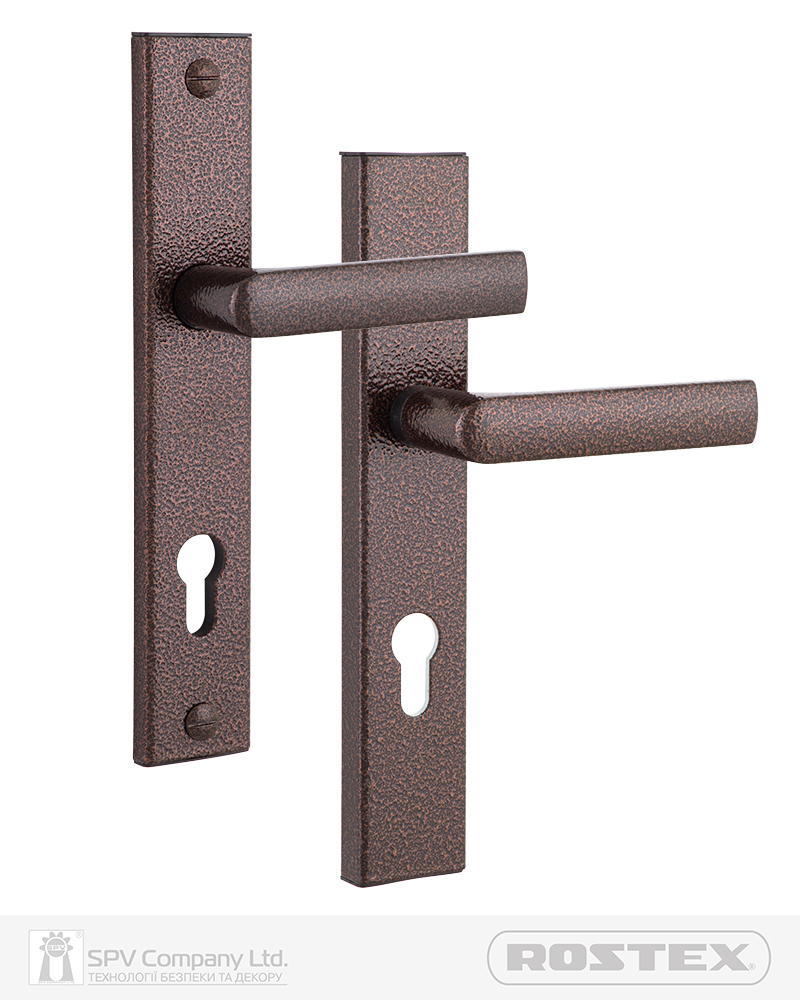 Фурнітура захисна ROSTEX 807 до основних замків для вхідних металевих, деревяних та профільних дверей товщиною 40-45мм з можливістю подовження до 100мм (комплекти подовження замовляються окремо). З-й клас безпеки. Матеріал: нержавіюча сталь, замак. Плата, що захищає корпус замка. Кріплення - болти М8.