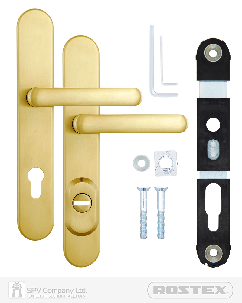 Фурнітура захисна ROSTEX RX4/О-40 EXСLUSIVE до основних замків для вхідних металевих, деревяних та профільних дверей товщиною 40-50мм з можливістю подовження до 100мм (комплекти подовження замовляються окремо). З-й клас безпеки. Матеріал: нержавіюча сталь. Лита плата, що захищає корпус замка. Загартований протектор циліндра із захистом від висвердлювання. Кріплення - болти М8.