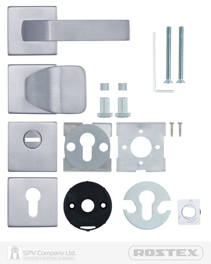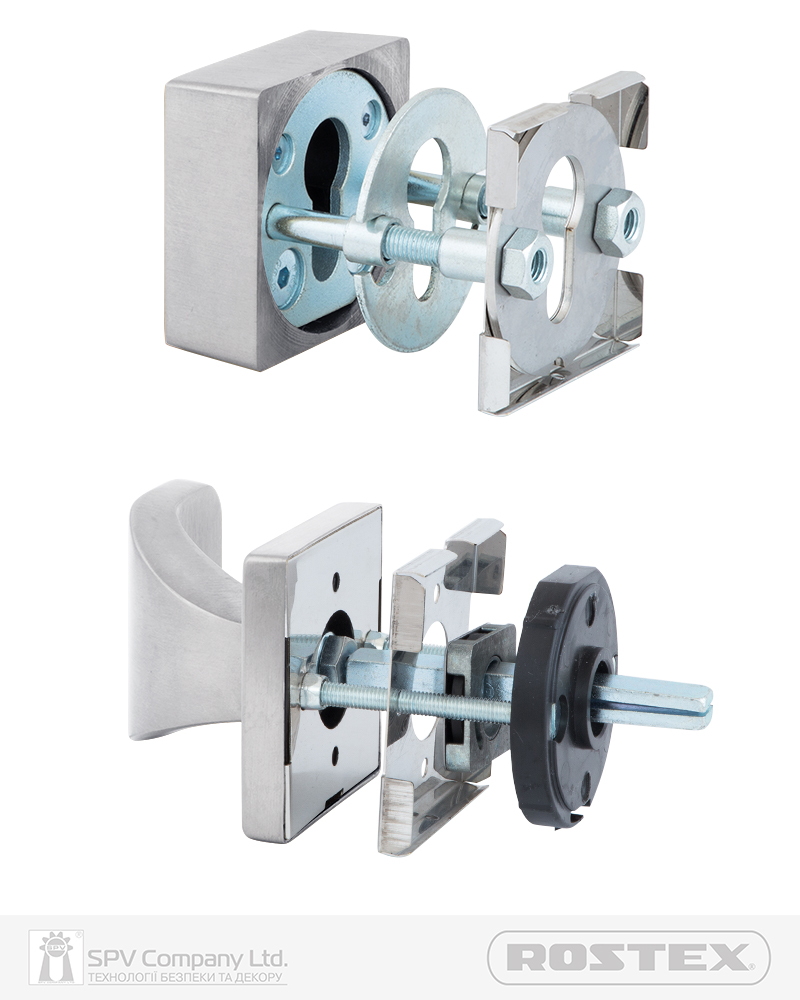 Фурнітура захисна ROSTEX R1/H QUADRUM до основних замків для вхідних металевих та деревяних дверей товщиною 38-45мм з можливістю подовження до 100мм (комплекти подовження замовляються окремо). З-й клас безпеки. Матеріал: нержавіюча сталь. Загартований протектор циліндра із захистом від висвердлювання. Кріплення - болти М5/М7.