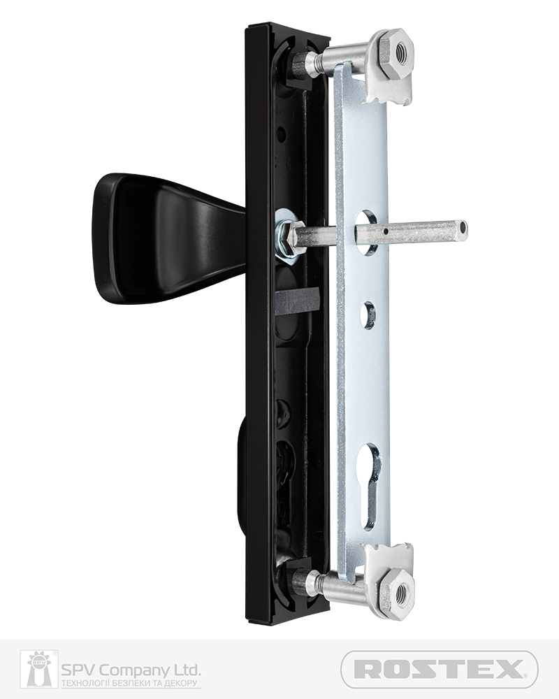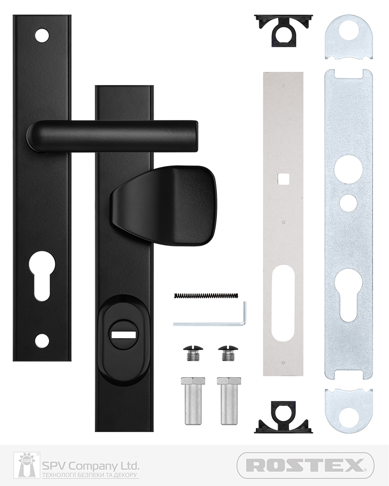 Фурнітура захисна ROSTEX R1 до основних замків для вхідних металевих, деревяних та профільних дверей товщиною 38-55мм з можливістю подовження до 100мм (комплекти подовження замовляються окремо).