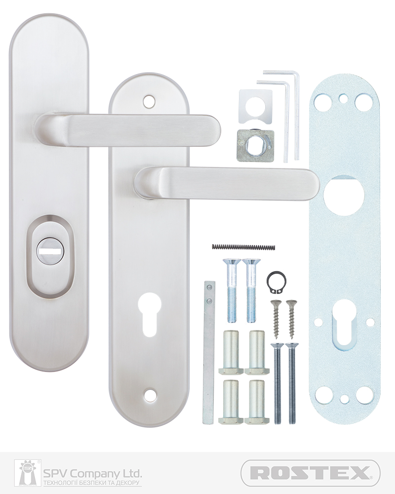 Фурнітура захисна ROSTEX SOLID-PRO + до основних замків на вхідні металеві або дерев’яні двері товщиною 56-70мм