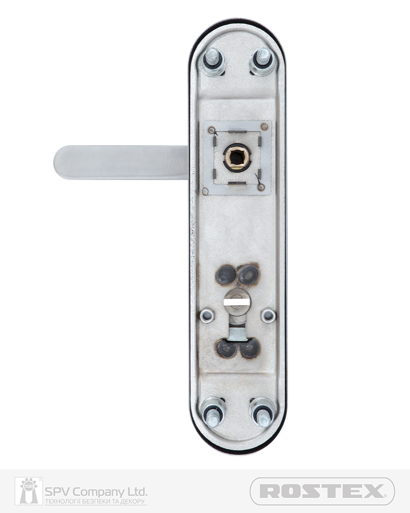 - Загартований протектор циліндру (броненакладка) із захистом від висвердлювання має чотири точки зварювання , що відповідає четвертому класу безпеки, а також два гвинти М6 захищають бронекнакладку.