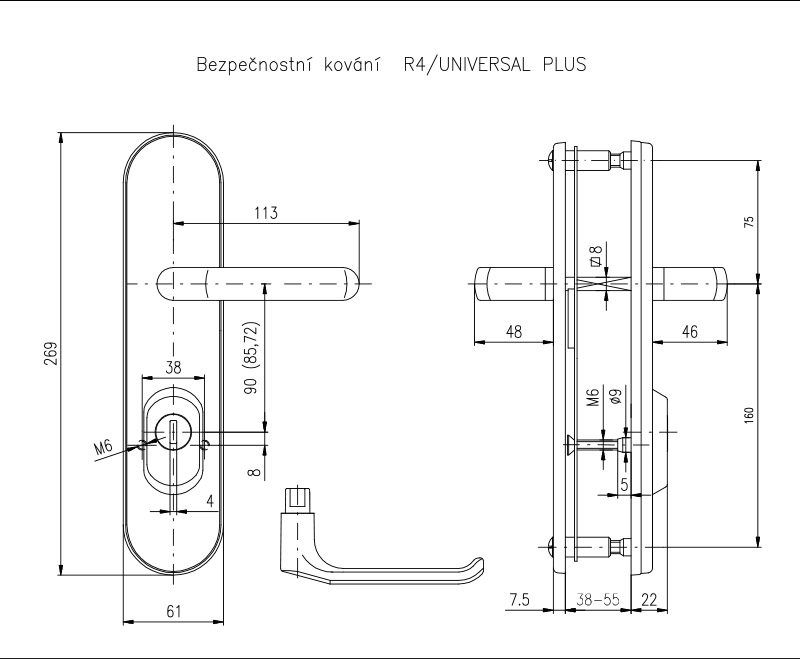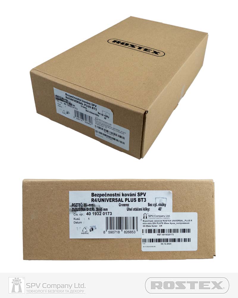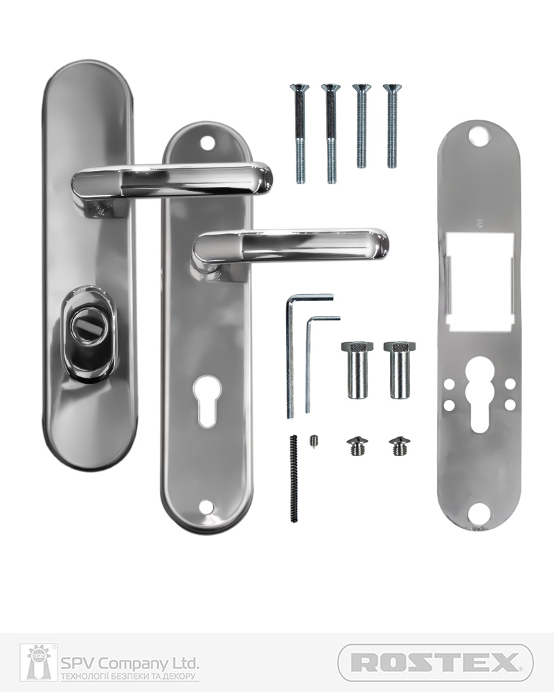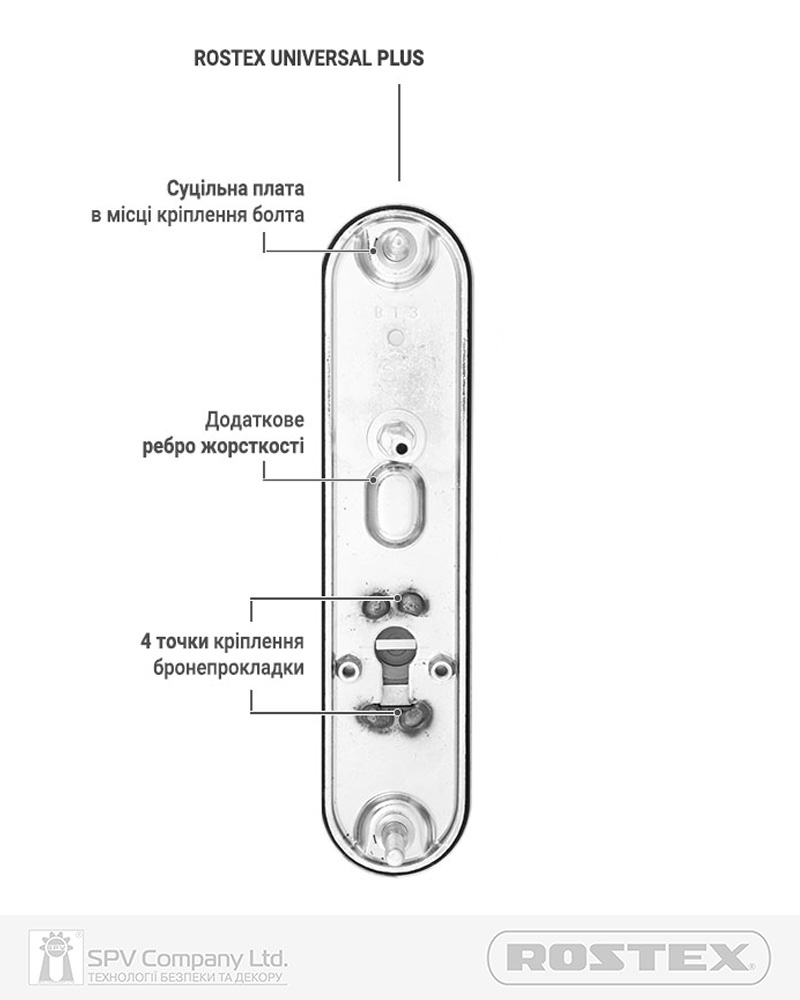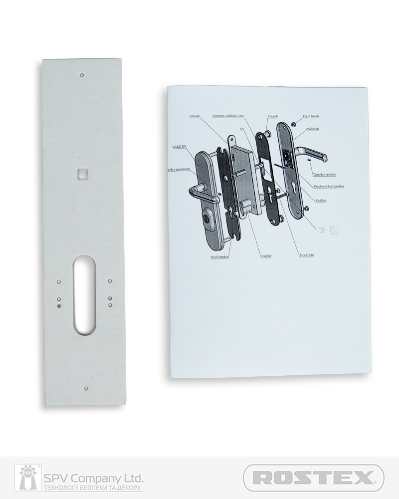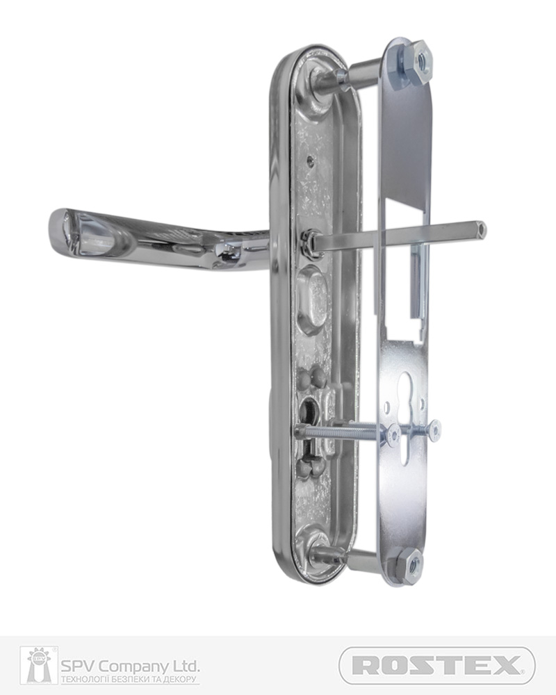Фурнітура захисна ROSTEX UNIVERSAL_PLUS до основних замків для вхідних металевих та деревяних дверей товщиною 38-55мм з можливістю подовження до 100мм (комплекти подовження замовляються окремо).