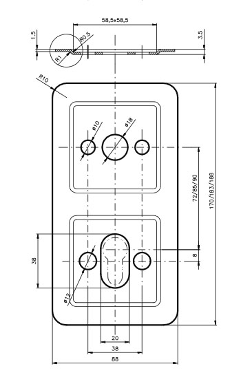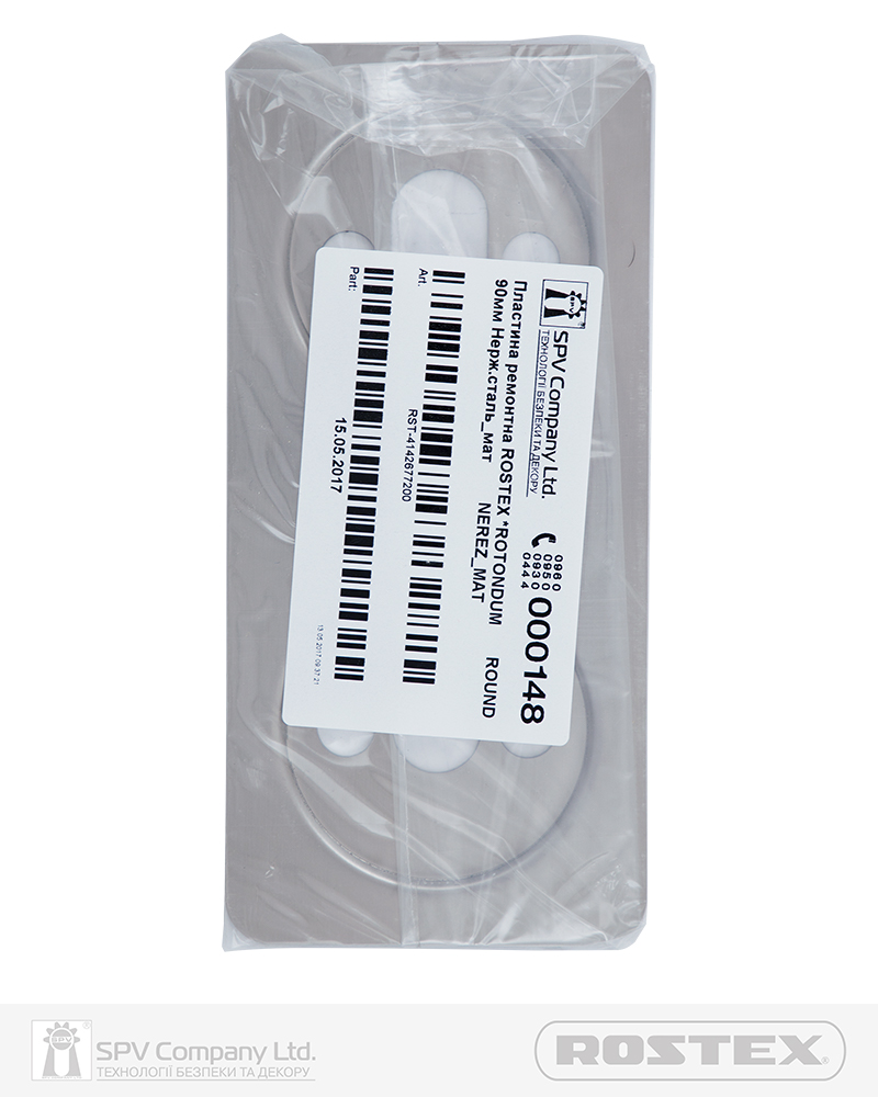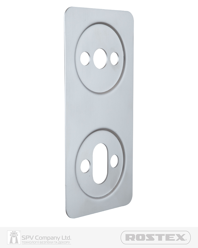 Ремонтна дверна пластина ROSTEX для фурнітури Rotondum. Міжосьова відстань: 72 мм. Матеріал: нержавіюча сталь.