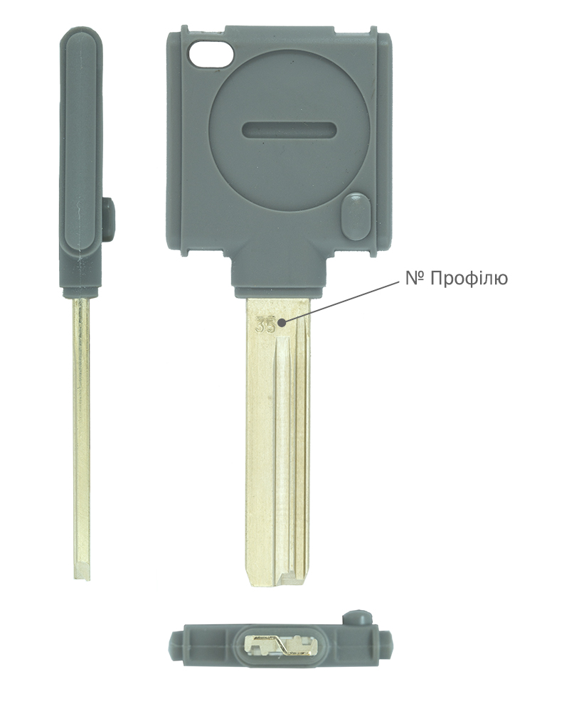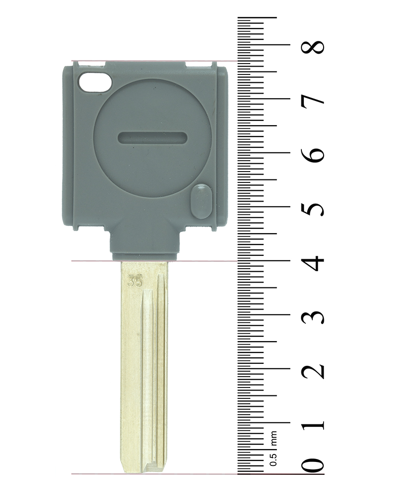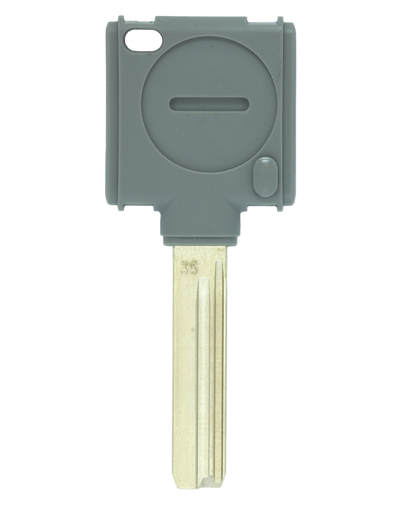 Бланк ключа SYNERKEY (звичайний механічний ключ, у головку якого вбудовано транспондер (міні-картка доступу), на ключовій платформі CLASSIC класу High Security для виготовлення майтер-систем з нарізкою для телескопічних пінів.