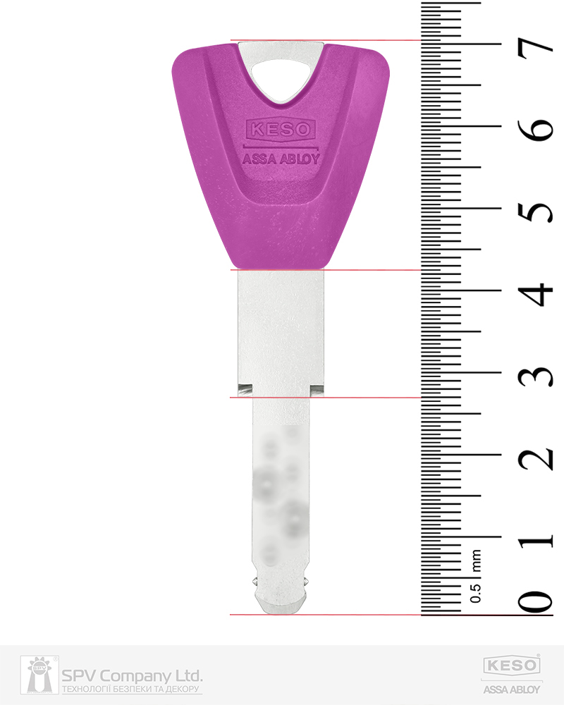 Бланк ключа до циліндра KESO 8000Ω², пинового циліндру класу Extra High Security. Патент на циліндр і ключі діє до 2034 року.