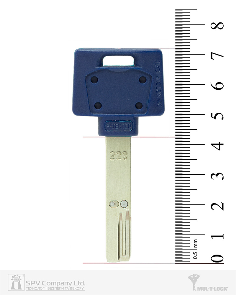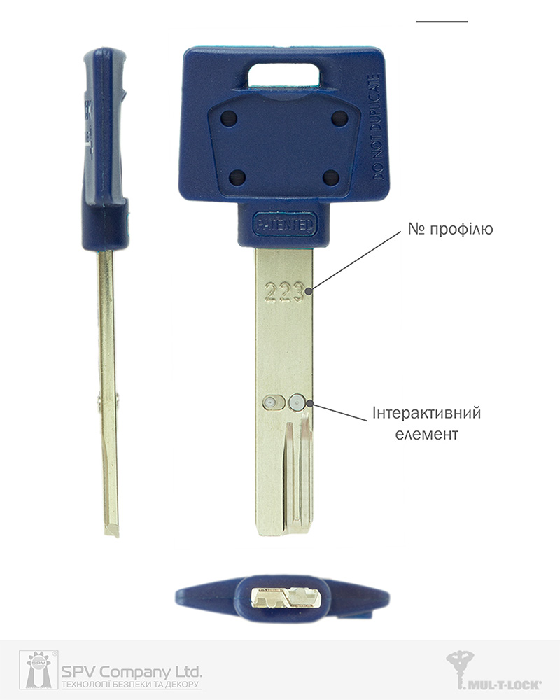 Бланк ключа класу High Security з інтерактивним елементом та нарізкою для телескопічних пінів до циліндрів INTERACTIVE+ з отвором під вставку з логотипом. Захищений патентом до 2028р.