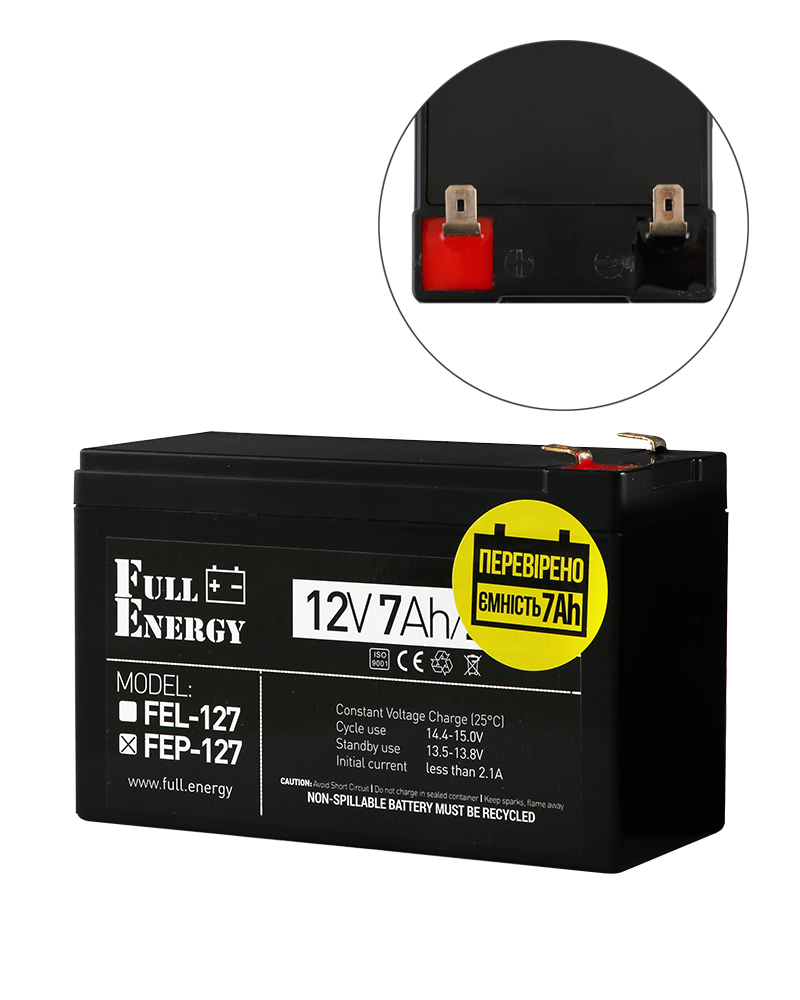Свинцево-кислотний Акумулятор FEP-127 виконаний в герметичному корпусі і проведений за технологією AGM (Absorbent Glass Mat). Дана технологія передбачає використання не рідкого, а абсорбованого електроліту. Безпечний для використання в житлових приміщеннях, так як AGM акумулятор практично не виділяє шкідливих або небезпечних газів і не вимагає обслуговування протягом всього терміну служби. Акумулятор 12в 7Ач краще справляється з підвищеними навантаженнями і відрізняється більш тривалим терміном експлуатації в порівнянні зі свинцевими батареями.