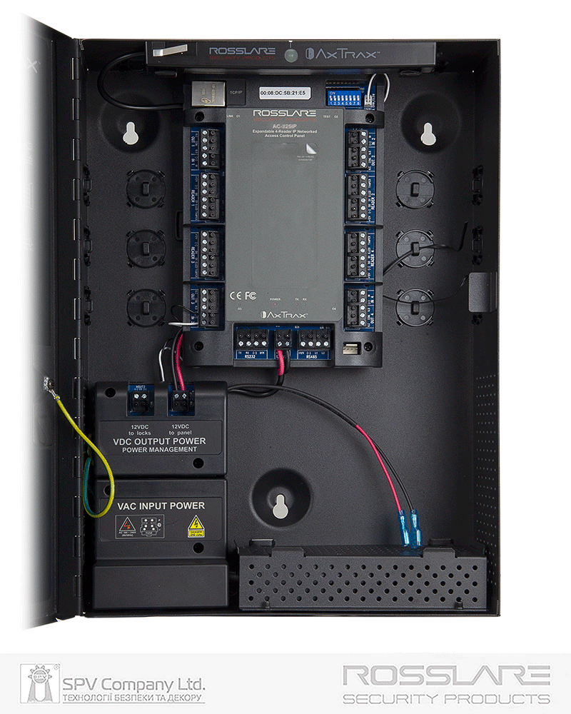 Керування здійснюється за допомогою ПЗ AxTraxNG™ від Rosslare, що забезпечує повнофункціональний контроль доступу та можливості автоматизації через порт 10/100 Ethernet.