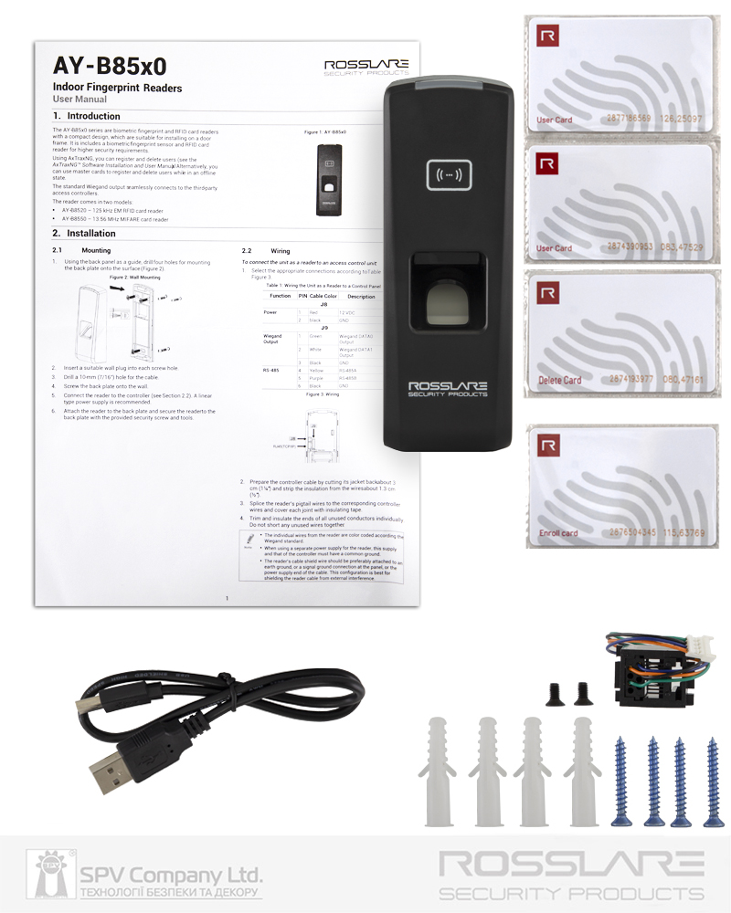 - Вихідні інтерфейси: Wiegand 26-Bit, TCP-IP, RS485, mini-USB 2.0