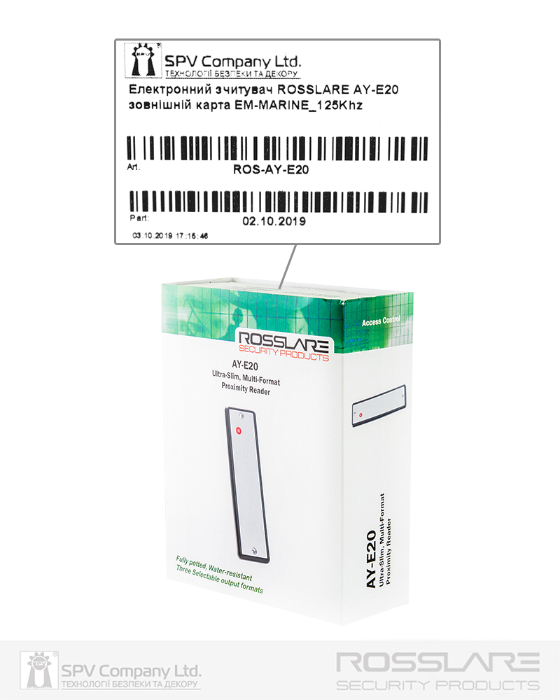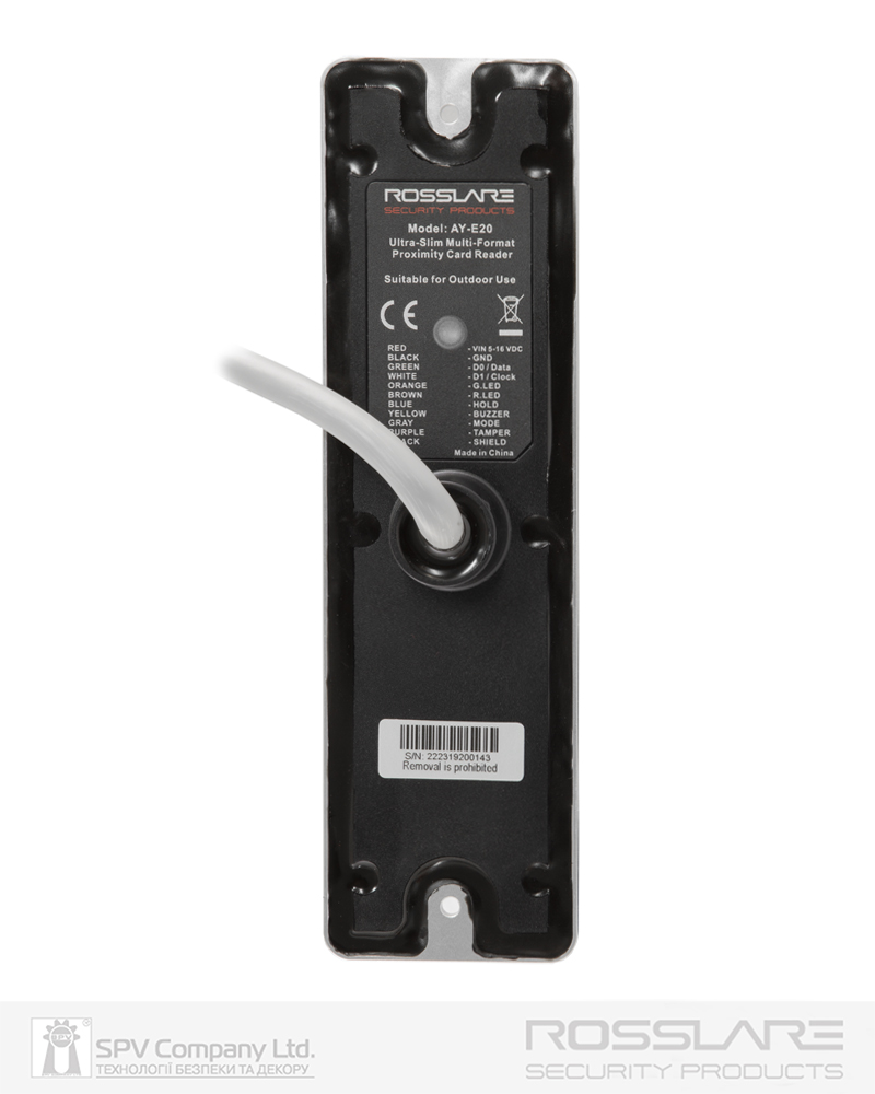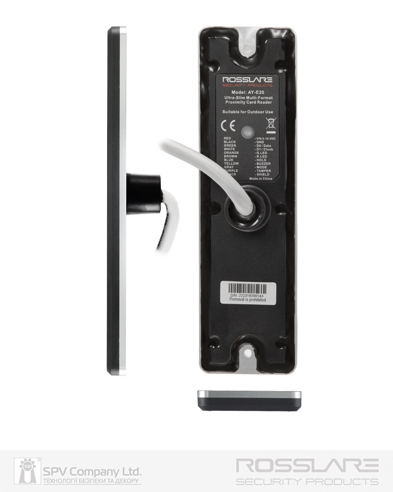 Надтонкий зчитувач безконтактних карт для застосування всередині та ззовні приміщень разом з контролерами ROSSLARE® АС-015, АС-020, мережевими контролерами ROSSLARE® та сумісними за інтерфейсом контролерами інших виробників.