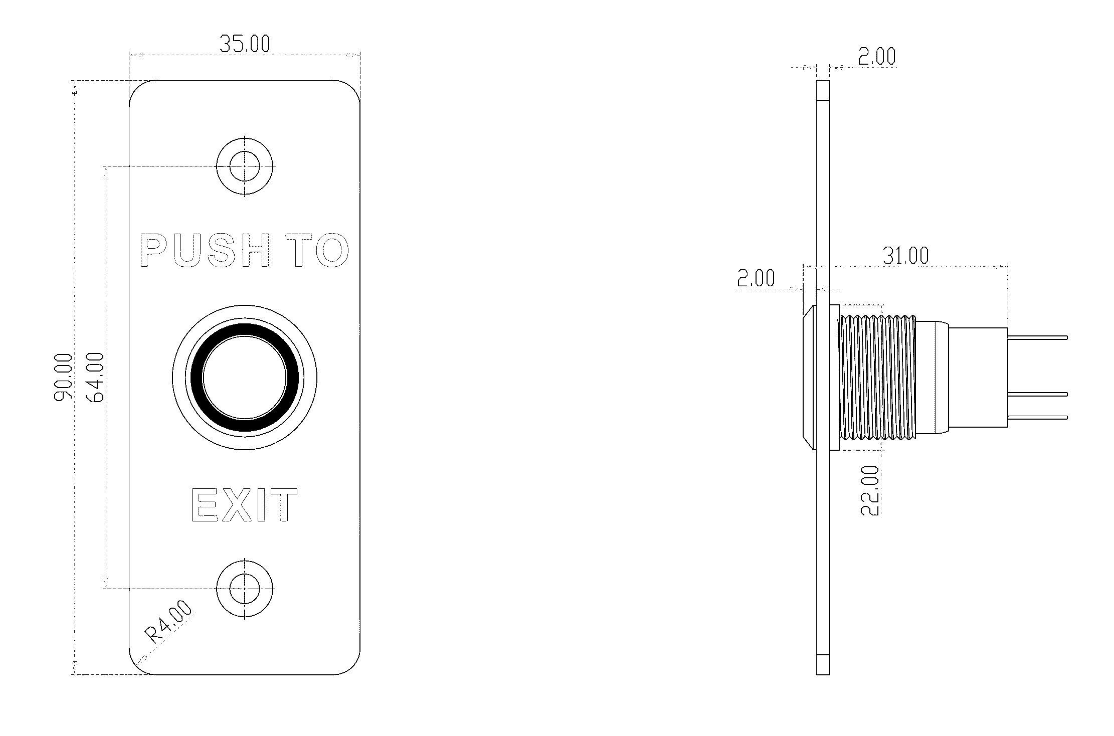 Кнопка виходу з нержавіючої сталі та світлодіодним підсвіченням. Використається в системах контролю доступу, придатна для встановлення з контролерами доступу, аудіо та відео домофонами, електромеханічними защіпками та електрозамками.