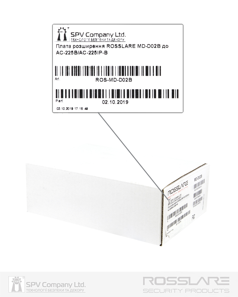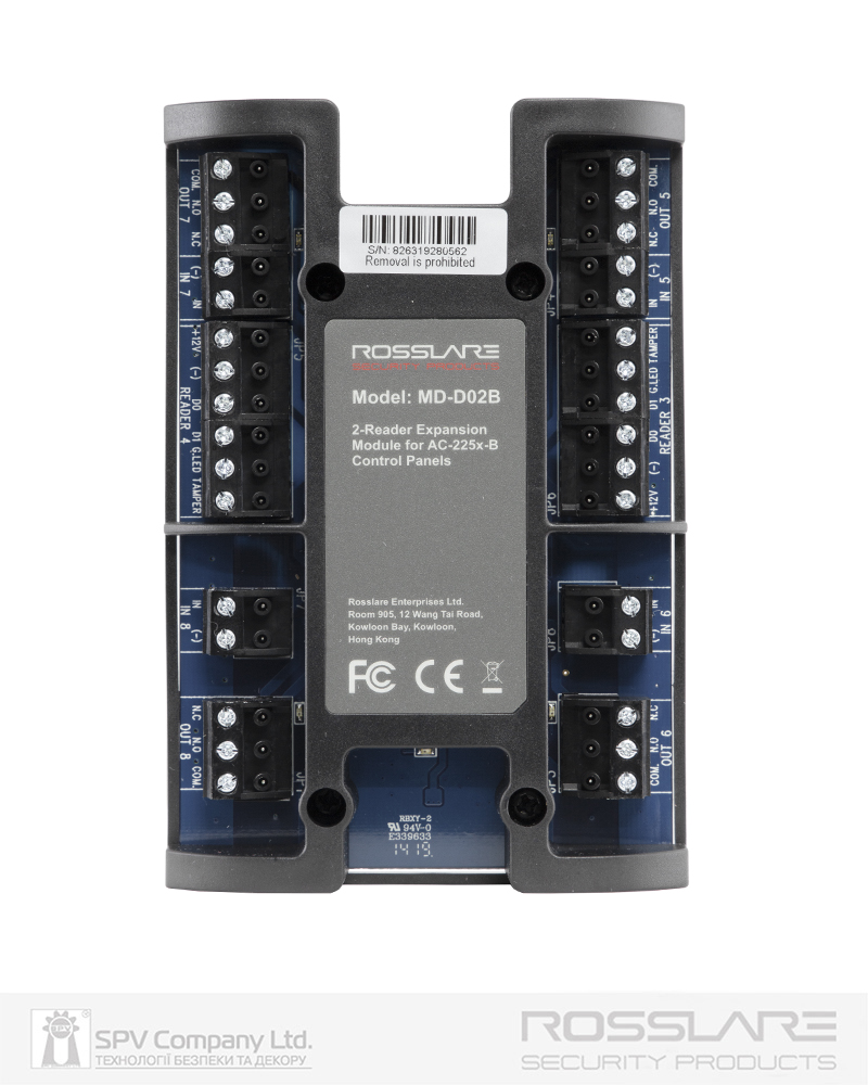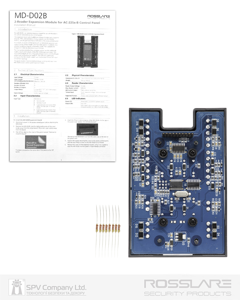 MD-D02B - це додаткова плата розширення для використання з мережевими контролерами управління доступом AC-225x-B компанії Rosslare.