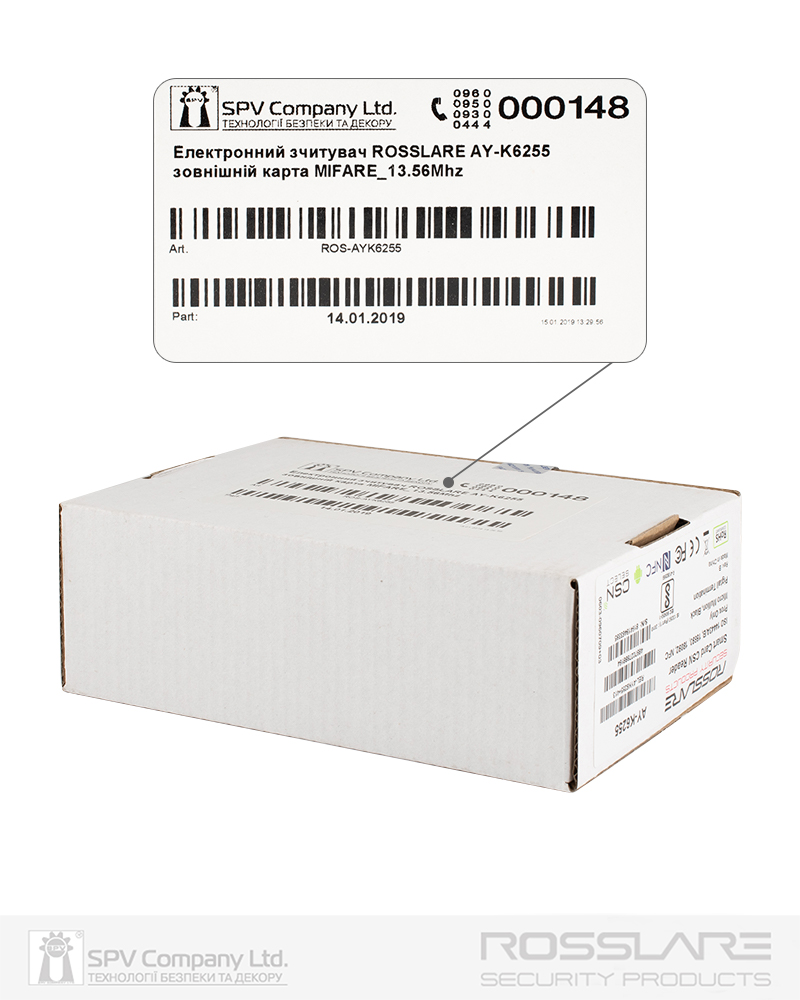 - Вихідний інтерфейс за умовчанням: Wiegand 26-bit. Інші формати Wiegand (32, 34, 40, 56, 64, 96, 128-bits) Clock&Data можна налаштувати за допомогою конфігураційної карти (Configuration Card), яка може бути створена за допомогою програматора ROSSLARE DR-6255.