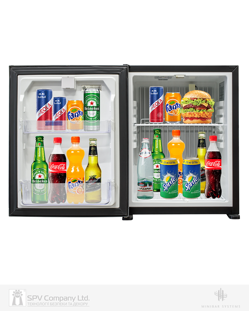 - Обладнання прозорими дверцятами забезпечує більший візуальний контакт гостя з умістом мінібару, що за світовим досвідом збільшує обсяг продажів продуктів на 30%.