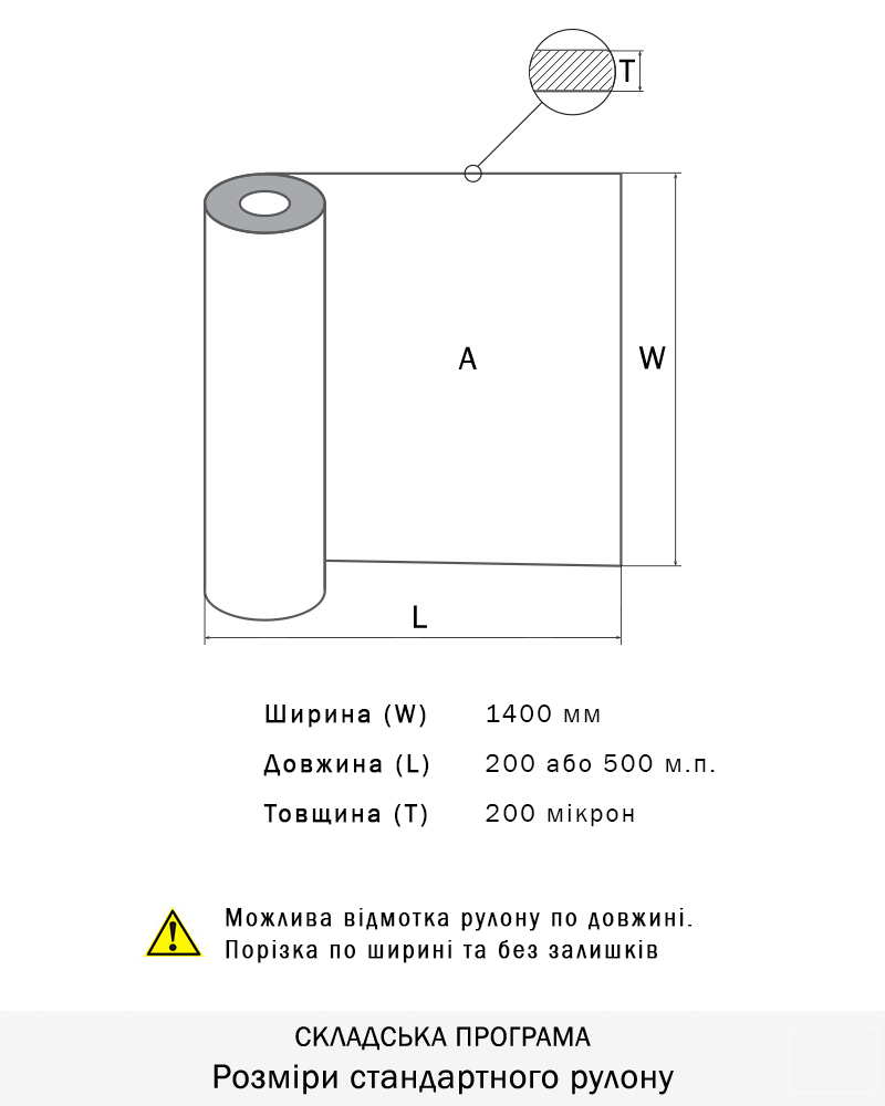 Рулони шириною 1320мм, довжиною 500, товщина 0,200мм. Можлива відмотка по довжині та порізка по ширині.
