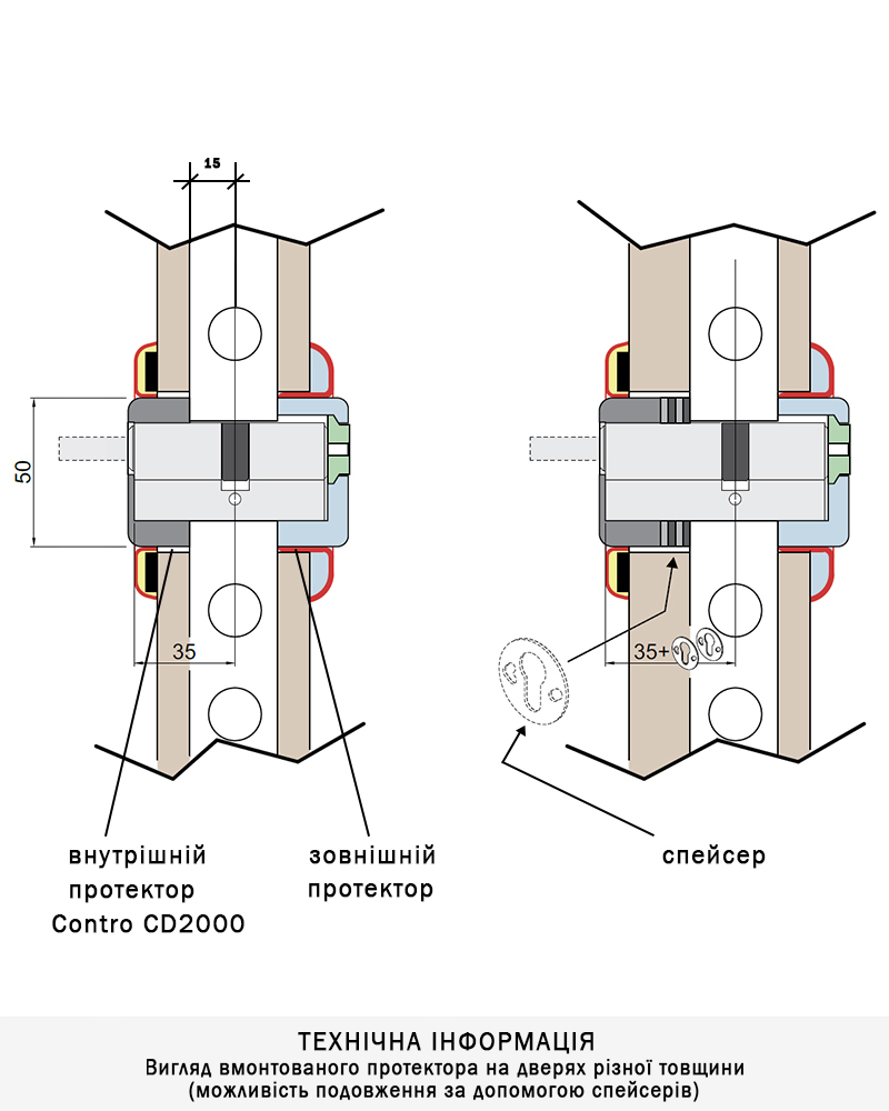 Встановлюється із внутрішньої сторони дверей. Зовнішній протектор замовляється окремо.