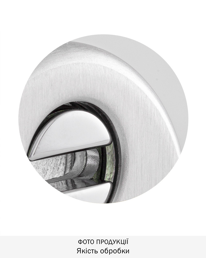 Обробка - нержавіюча сталь матова. Має матову поверхню, що царапана щіткою, сріблясто-сірого кольору. Найкраще виглядає на дверях червонуватих відтінків – від світлого кремового до темнокоричневого шоколадного. Для інтер’єрів у сучасних та класичних стилях.