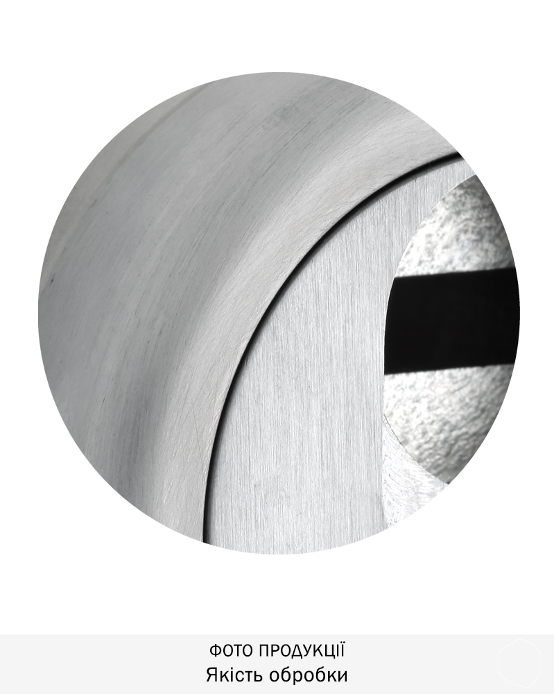 Обробка нержавіюча сталь матова. Має холодний сталевий відтінок із матовою поверхнею, що царапана щіткою. Найкраще підходить для застосування у сучасних інтер’єрах.
