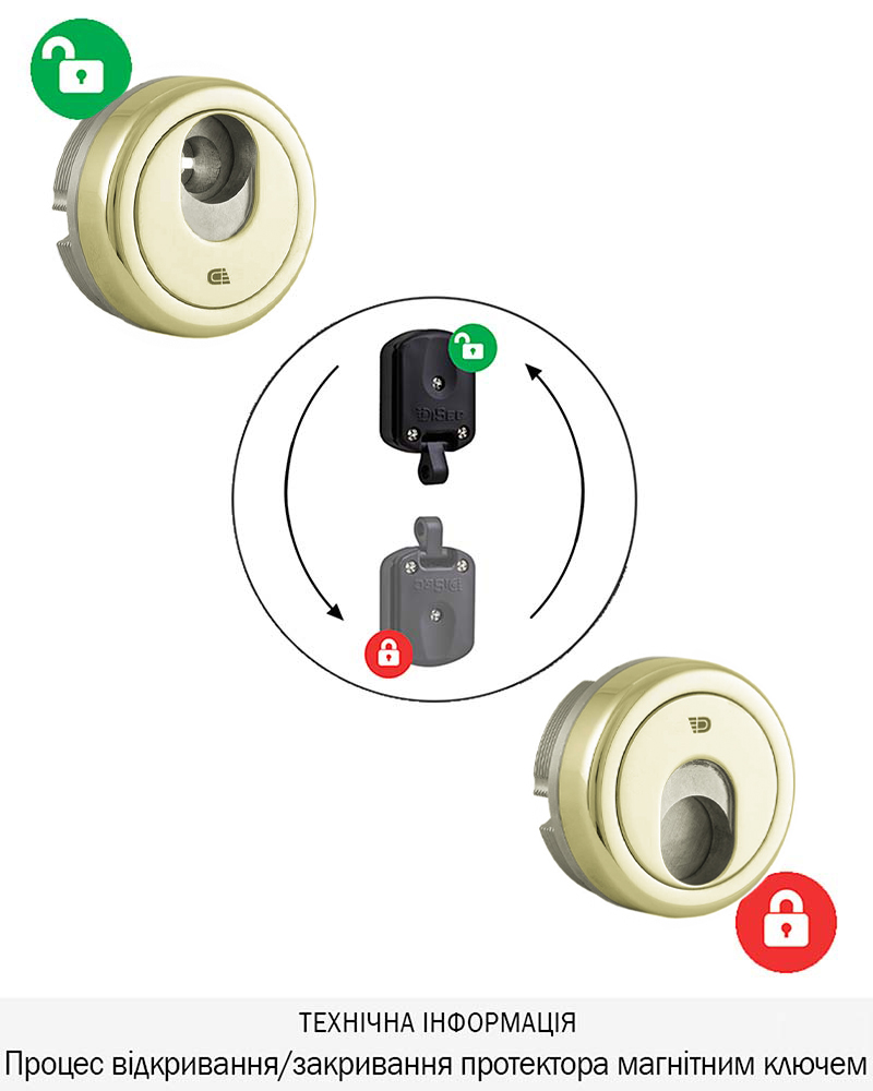Захисний протектор моделі 3G8,з магнітним ключем призначений для захисту механізму стандарту OMEGA, від зламу. Захисна шторка броненакладки, додатково захищає ключний отвір від потрапляння сторонніх предметів, вандалізму, підбору відмичок.