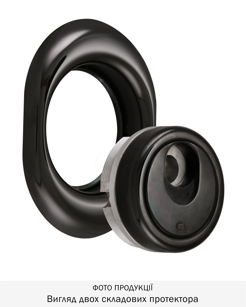 -Захисний протектор вкручується в зовнішню“юбку” та фіксується гужоном.