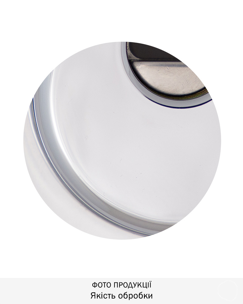 Обробка хром полірований. Одна із найпоширеніших та найстійкіших обробок. Має поліровану дзеркальну поверхню сріблястого кольору. Добре виглядає як на темних так і на світлих дверях всіх кольорів. Підходить до всіх стилів інтер’єрів.