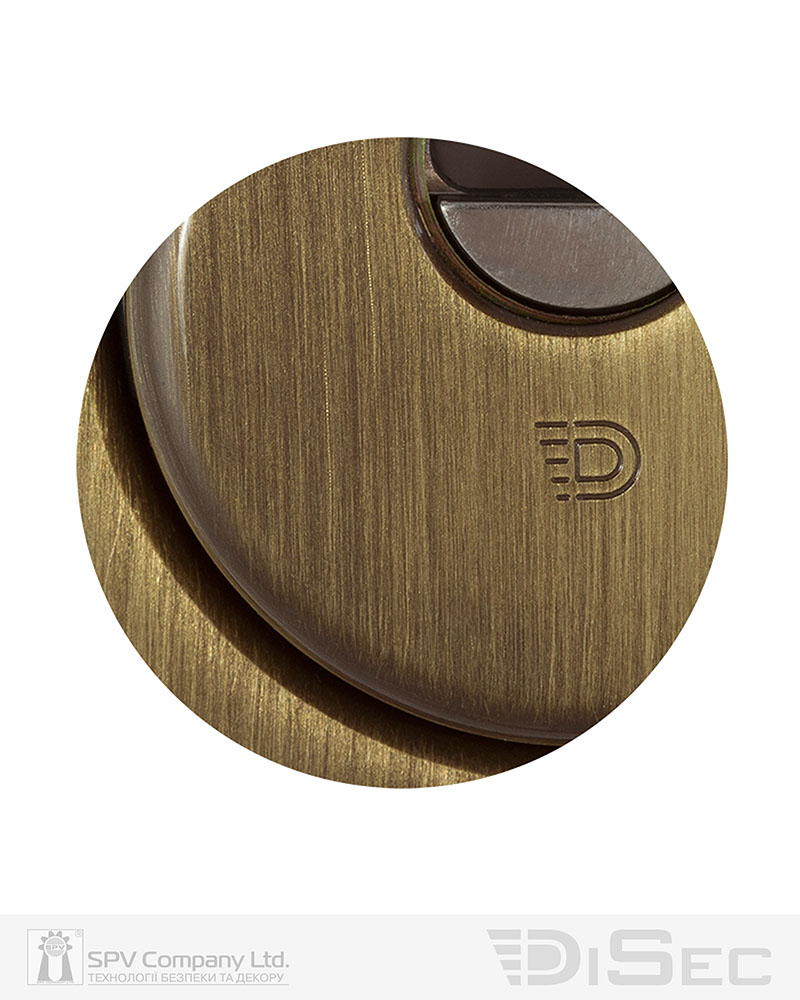 Обробка бронза сатин. Має коричневий колір бронзи. Поверхня, що царапана щіткою та після цього вкрита лаком. Найкраще буде виглядати на дверях кольору натуральної деревини. Для застосування в інтер’єрах у класичному стилі.