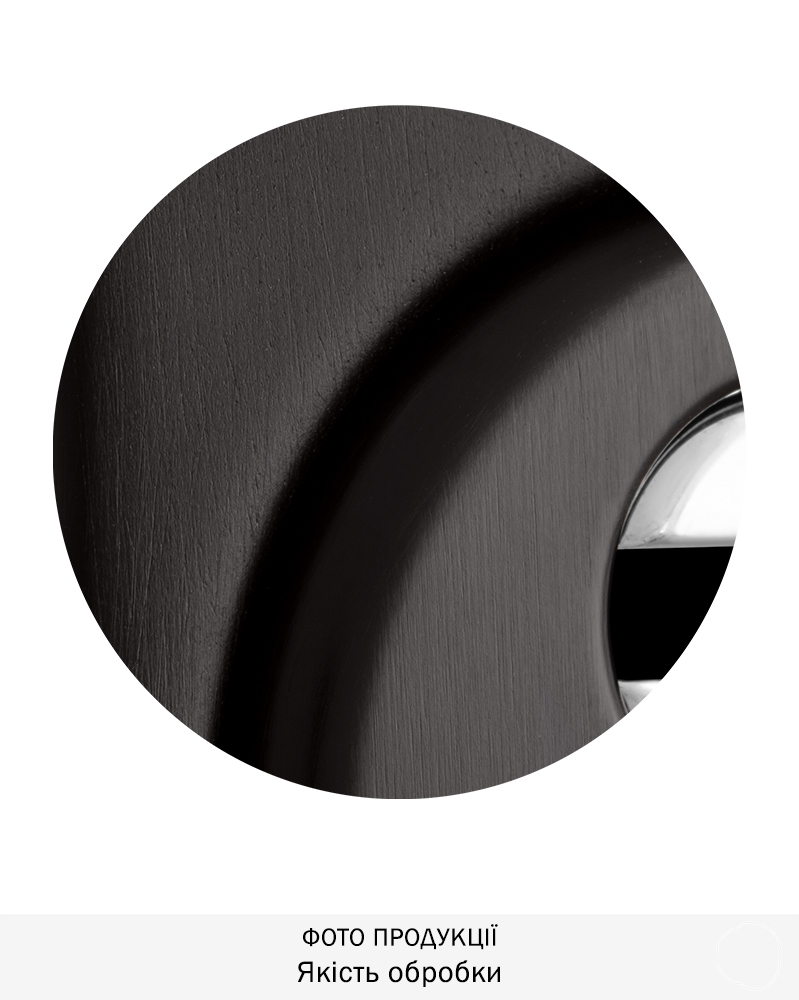 Обробка фарба чорна. Однорідна напівглянцева поверхня чорного кольору. Найкраще виглядає на дверях світлого та сірого кольорів. Для інтер’єрів у сучасних та класичних стилях.