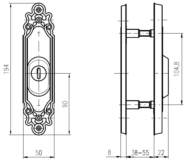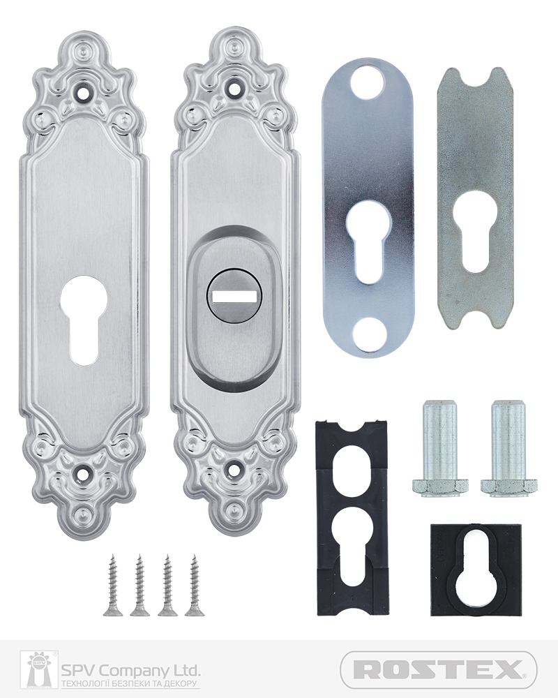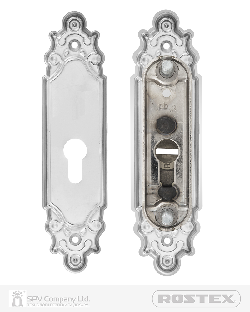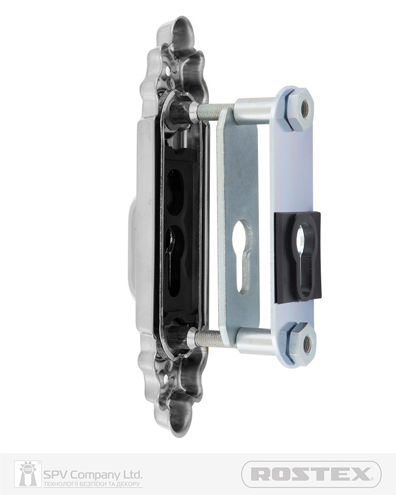 Протектор захисний R3 OZDOBNA до додаткових замків для вхідних металевих дверей товщиною 38-55мм з можливістю подовження до 100мм (комплекти подовження замовляються окремо). З-й клас безпеки. Матеріал: нержавіюча сталь. Плата, ща захищає корпус замка. Загартований протектор циліндра із захистом від висвердлювання. Кріплення: болти М8.