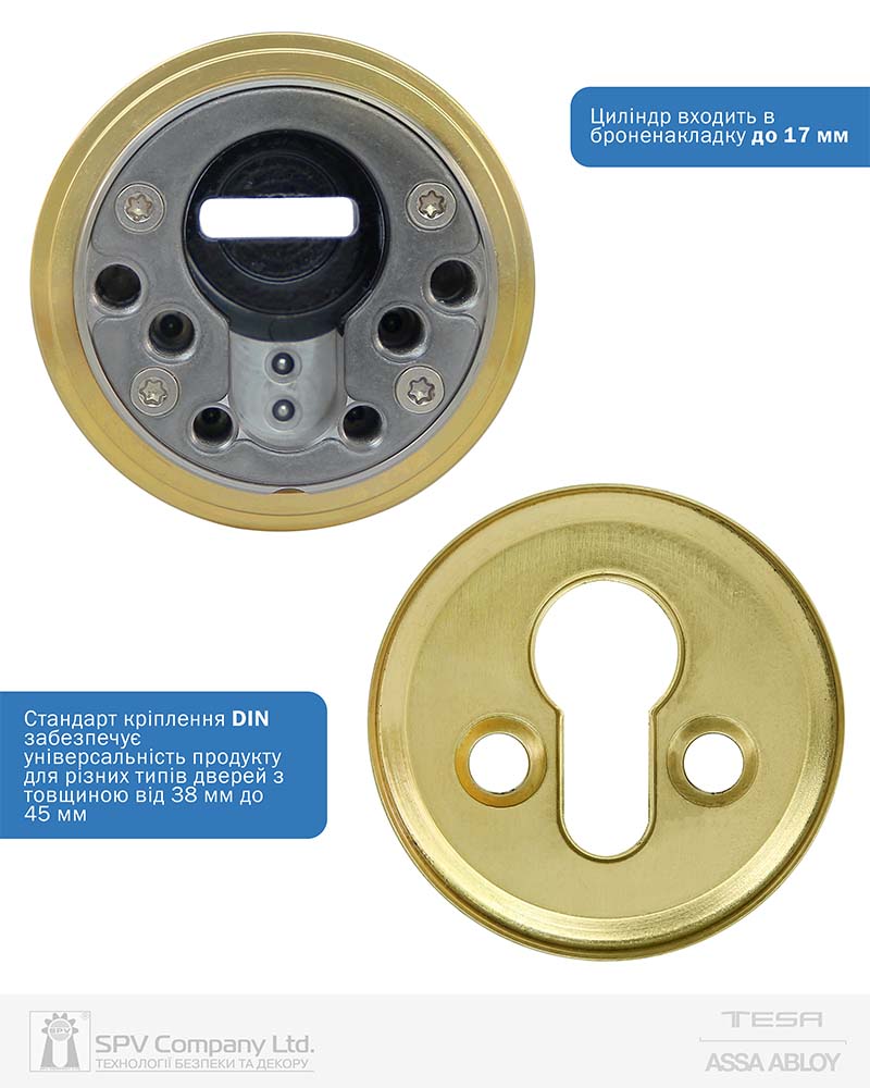 TESA E900 — це високоякісний протектор циліндра від іспанського виробника TESA Assa Abloy, що забезпечує високий рівень механічного захисту для вхідних дверей у житлових та комерційних приміщеннях. Поєднує у собі інноваційні технології безпеки, стійкість до фізичного зламу та елегантний дизайн.