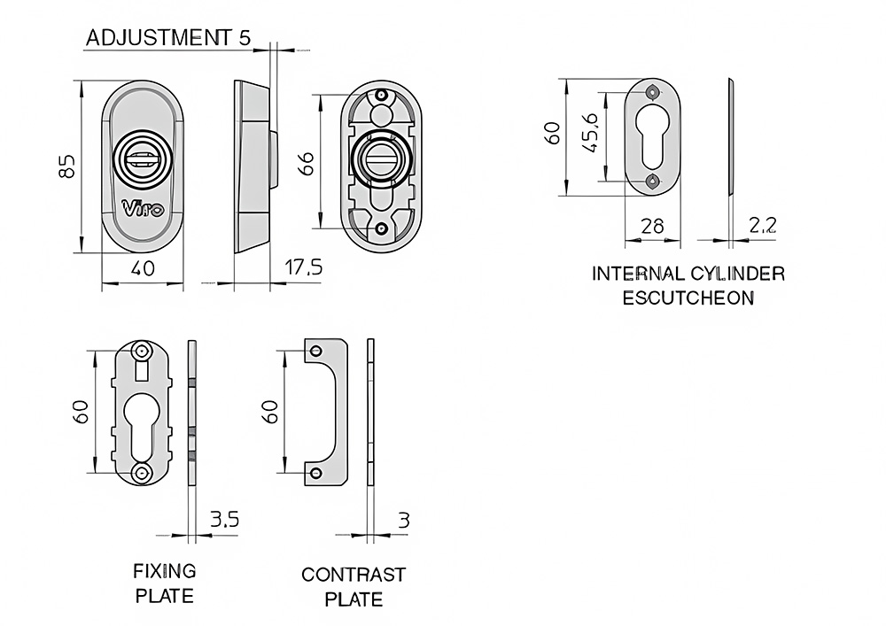 Сумісні зі всіма замками "Spranga" серії 4008. З усіма врізними замками Viro наступних серій: 7431, 7435, 7438 та з усіма врізними замками без отворів DIN стандарту.