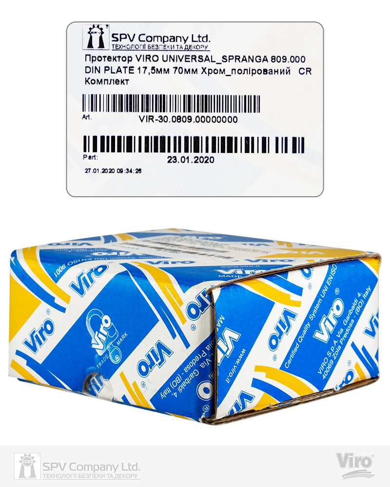 Броненакладки Viro (Серії 809) компактні, легко монтуються, а також мають привабливий дизайн і підходять для вузькопрофільних дверей. При установці на замок "Spranga" або на врізних замках забезпечують захист циліндра європейського профілю будь-якого типу від злому і висвердлювання.