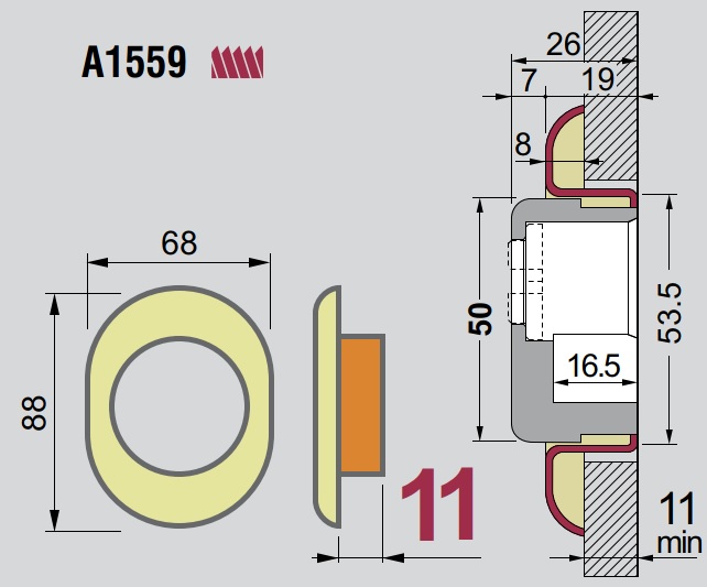 Зовнішній декоративно-захисний щиток Disec A1559 серії Monolito для протекторів, глибина яких регулюється за допомогою різьби.