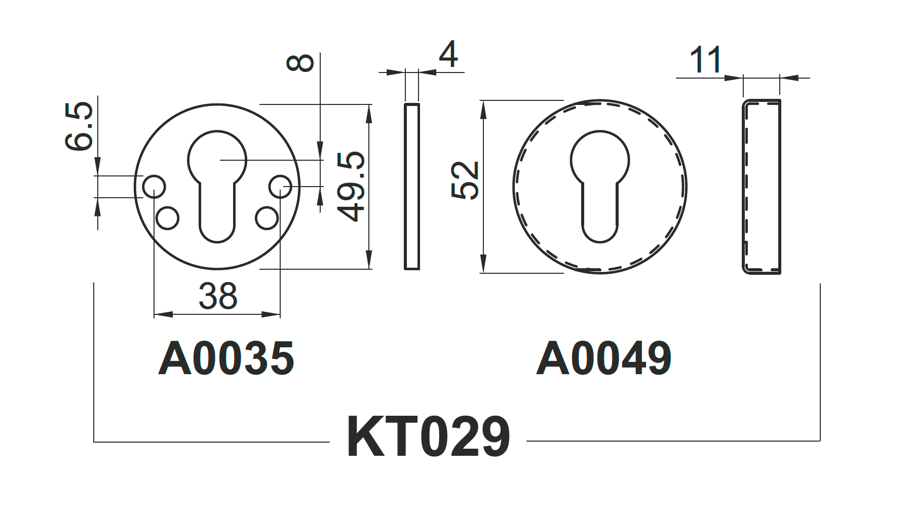 Декоративний щиток внутрішній до захисного протектора стандарту DIN до замків для циліндрового механізму DIN. Виготовлені з латуні. Кріпляться на двері за допомогою захисної шайби та гвинтів М6х40мм або саморізами.Товщина щитка - 11 мм. Діаметр - 52 мм