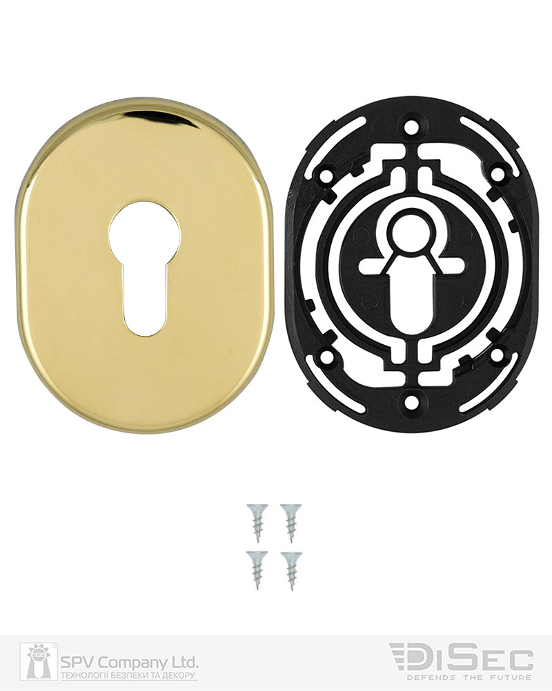 Декоративний щиток внутрішній до захисного протектора стандарту DIN до замків DFM3, OFMPA3, CEM, CTM, для циліндрового механізму DIN. Виготовлені з латуні. Кріпляться на двері за допомогою пластика та саморізів.