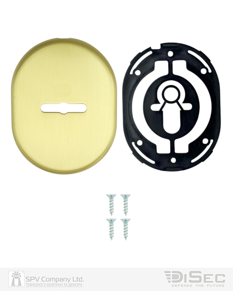 Обробка латунь матова, має золотисто-жовтий колір натуральної латуні та матову поверхню, яка оброблена щіткою. Найкраще виглядає на темних дверях, підходить до інтер’єрів у класичному стилі.