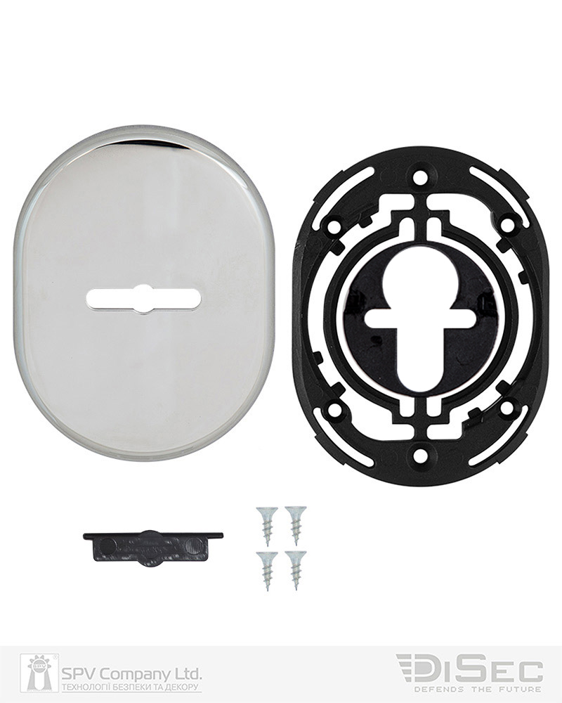 Обробка хром полірований. Одна із найпоширеніших та найстійкіших обробок. Має поліровану дзеркальну поверхню сріблястого кольору. Добре виглядає як на темних так і на світлих дверях всіх кольорів. Підходить до всіх стилів інтер’єрів.