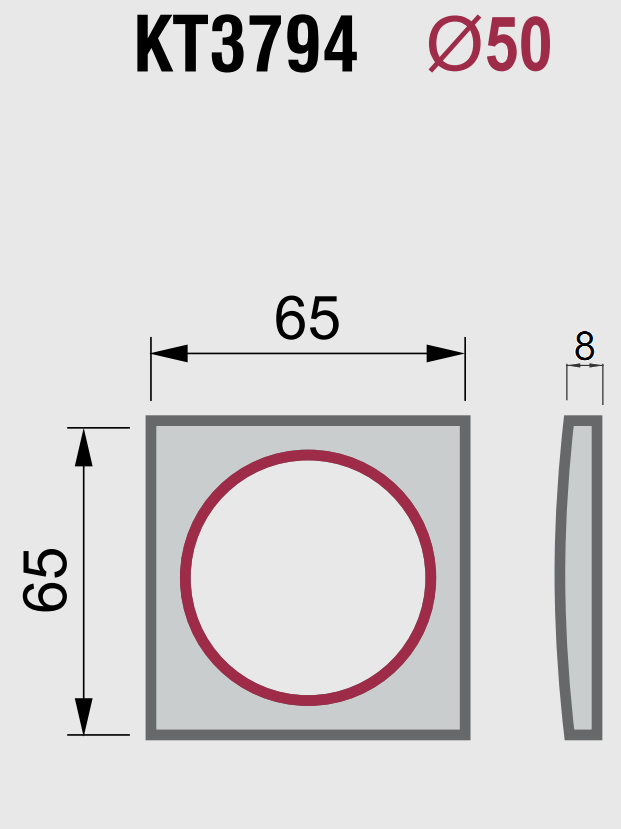Декоративний щиток DISEC KT3794 серії KUBO до захисних протекторів DISEC діаметром 50мм (серій BDS, DIAMOND, KRIPTON, MONOLITO, MAG ROUND).