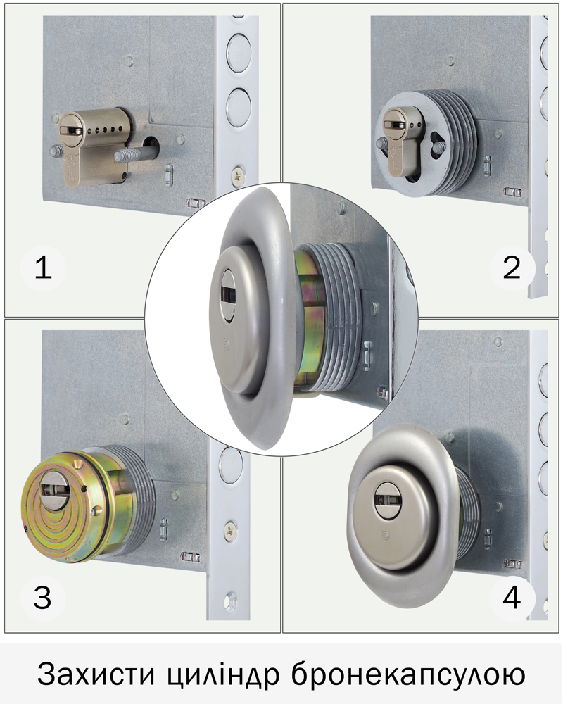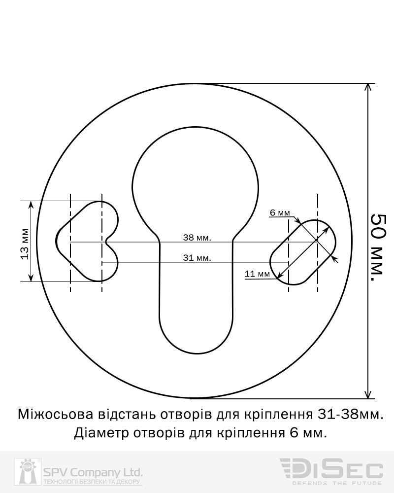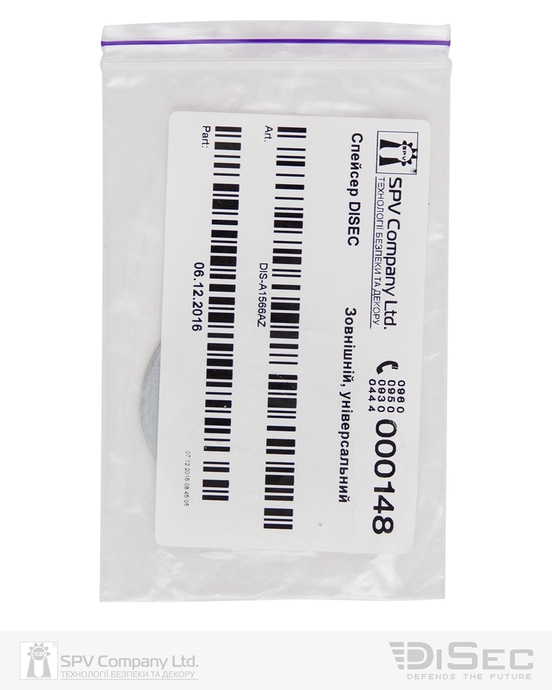 Спейсер (прокладка). Міжосьова відстань отворів для кріплення 31-38мм. Товщина спейсера 2мм. Підкладається під броненакладку і служить для відсунення броненакладки від корпусу замку в процесі монтажу. Слугує як заповнювач простору між броне накладкою і корпусом замка, при їх кріпленні в процесі монтажу. Кріпильні отвори спейсера які мають універсальну форму і декілька міжосьових відстаней дають більше можливих варіантів кріплення броні до корпусу замка.