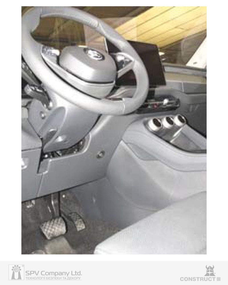 CONSTRUCT VOLANT – механічний протиугінний замок керма. Блокує поворот рульового валу, забезпечуючи тим самим найнадійніший захист від викрадення. Кожен замок має унікальну конструкцію під конкретну модель автомобіля, сконструйований з повним дотриманням вимог пасивної безпеки транспортного засобу. Дозволяє встановити замок з мінімальним втручанням в інтер'єр автомобіля. Встановлюється за допомогою зривних болтів на штатні кріплення в кузові автомобіля. Для замикання потрібно виставити кермо прямо, вставити ключ у замок до упору і повернути на 180°. Це єдиний спосіб закрити замок, можливість випадкового закриття - виключено. Відкрити замок так само просто. В комплекті замка 2 ключа та пластикова картка для можливості виготовлення дубліката ключа. Не залежить від стану акумулятора та інших функцій автомобіля. Відкриття замка CONSTRUCT VOLANT можливе виключно контактним способом за допомогою ключа, деактивація на відстані - неможлива.
