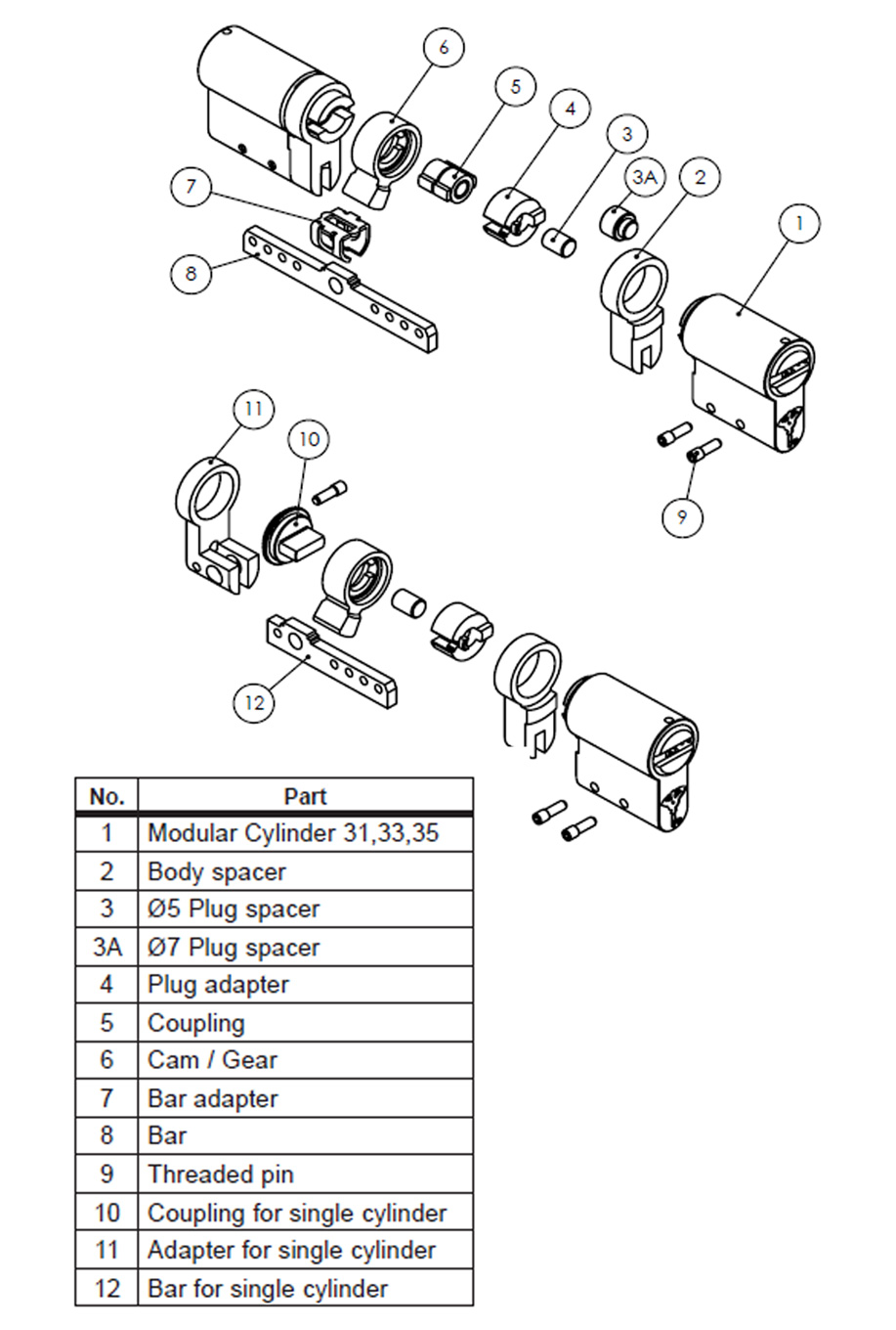 Бар MUL-T-LOCK для циліндра двустороннього MODULAR 1.2. Для збірки двосторонніх циліндрів MTL в системі Модуляр
