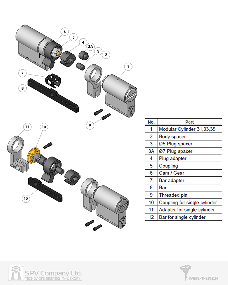 Корпус циліндра MUL-T-LOCK Modular Classic / Interactive 33мм, колір нікель сатин, матеріал - латунь, застосовується для складання циліндра у системі модуляр.