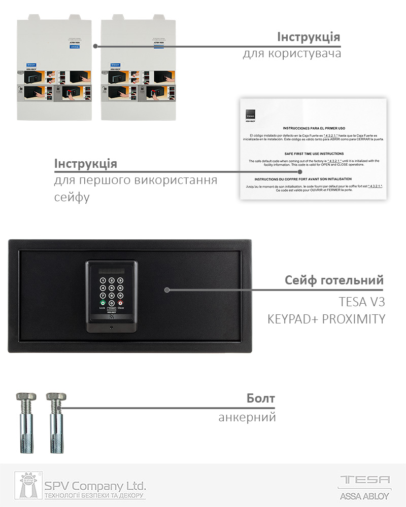 - У разі підозри крадіжки з сейфа - завантажити та переглядати останні 1000 подій сейфа, що містять назву готелю, номер кімнати, дату і час кожного відмикання.
