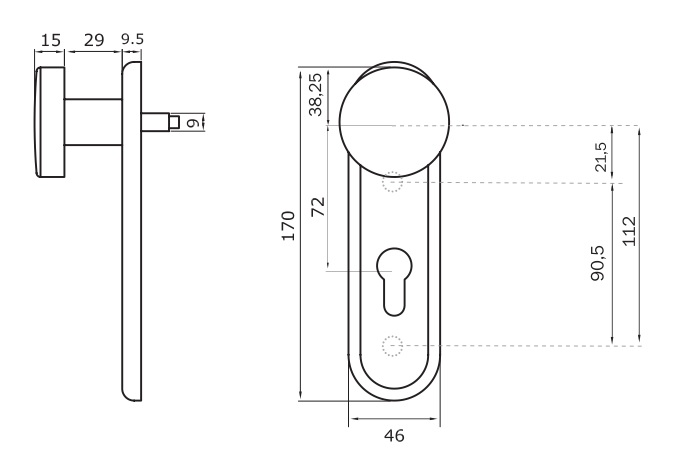 - Кріплення – болти М5 для дверей товщиною до 63 мм.