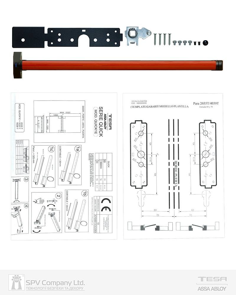 Використовується в металевих, дерев’яних та профільних дверях евакуаційних виходів разом з замком врізним TESA CF60 (одностулкові двері та активна стулка двостулкових дверей) та замком врізним TESA CF320SR9Z (пасивна стулка двостулкових дверей). Придатний для встановлення на димозахисних та протипожежних дверях.