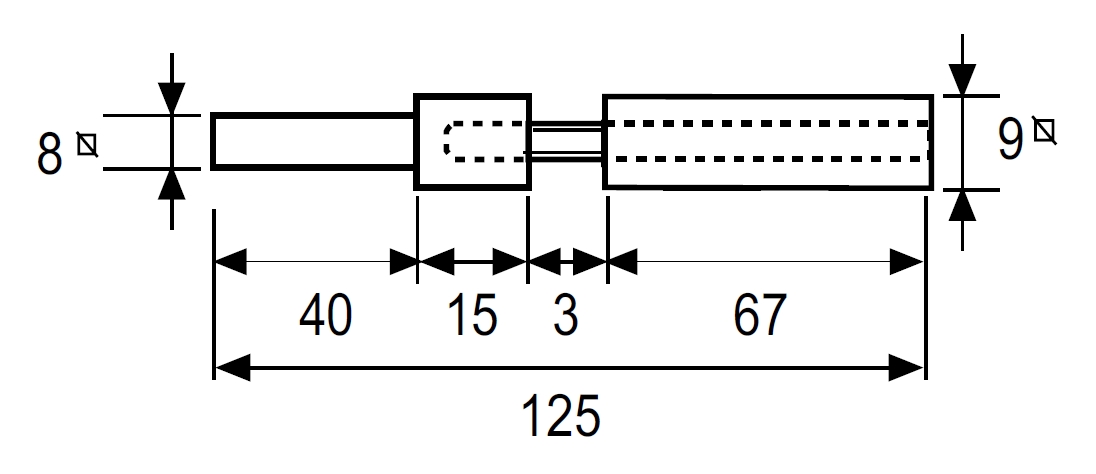 Розділений шток для використання з врізним антипанічним замком з роздільним квадратом (з замком під квадрат9 мм, антипанікою під квадрат 9 мм та зовнішньою ручкою під квадрат 8 мм).