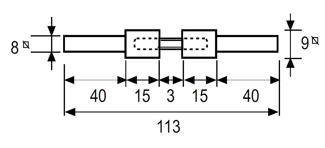 Розділений шток для використання з врізним антипанічним замком з роздільним квадратом 9 мм, антипанікою с квадартом 8 мм та зовнішньою ручкою з квадратом 8 мм.