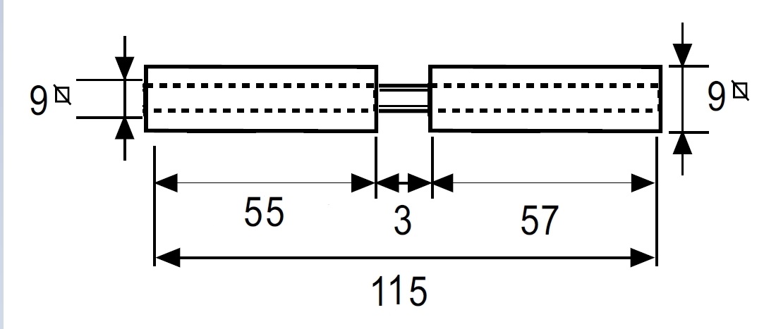 Розділений шток для використання з врізним антипанічним замком з роздільним квадратом та ручками 9 мм.