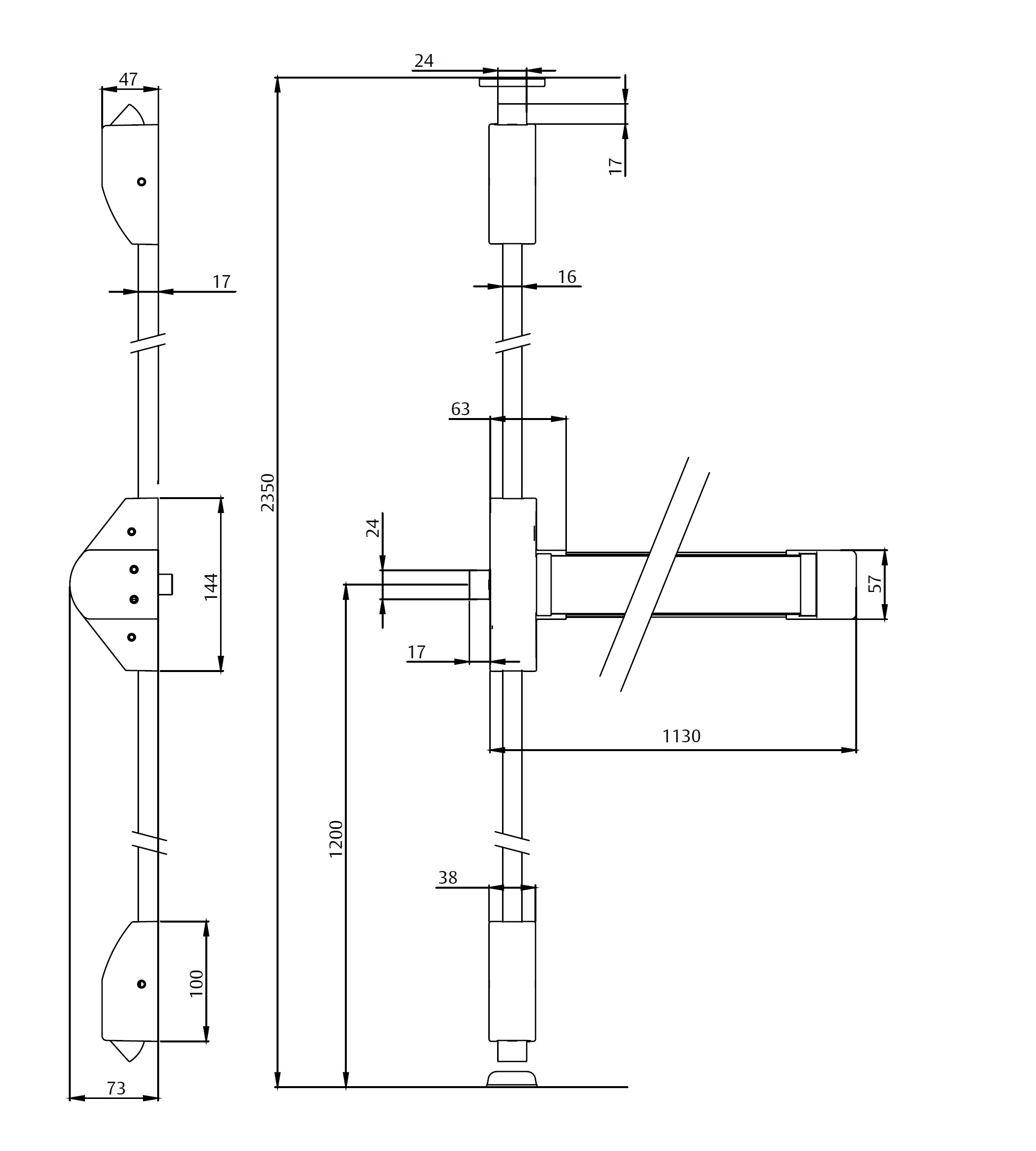 • Довжина: 1 130 мм (для дверей шириною до 1200 мм)