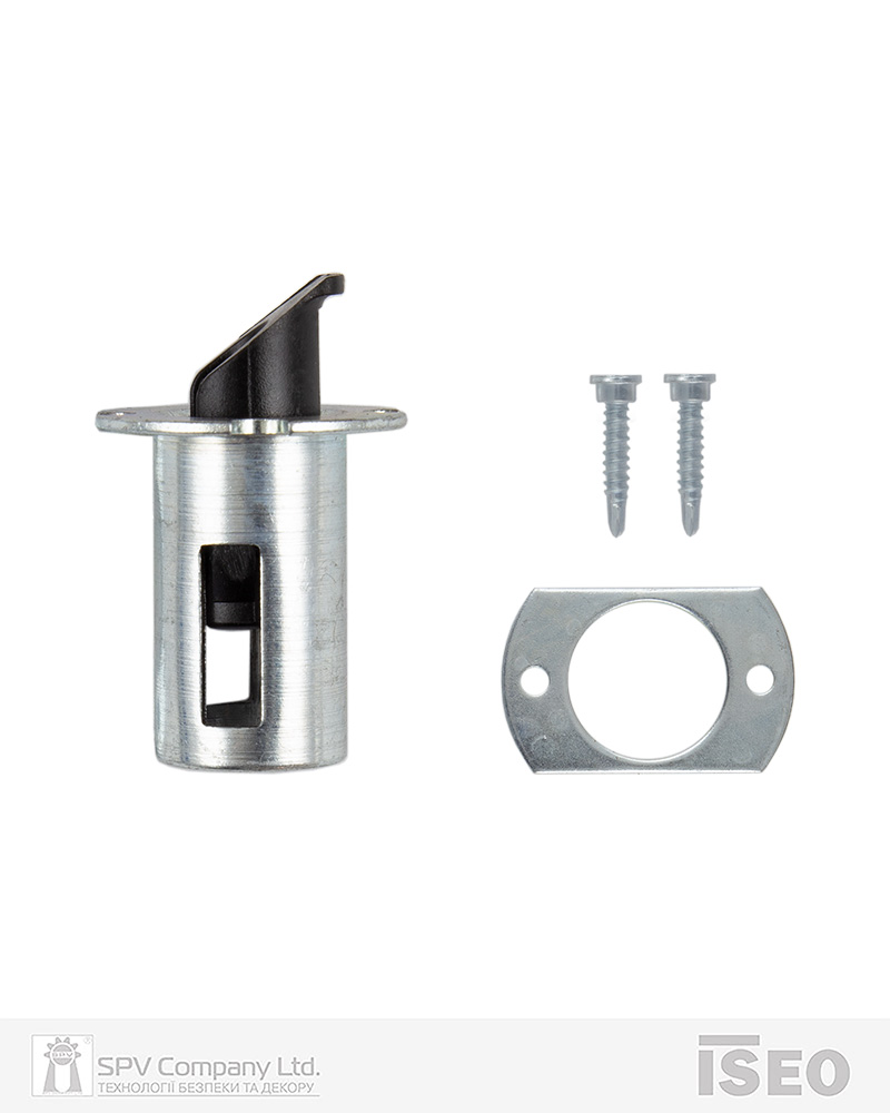 Встановлюється разом з замком ISEO 212000654I (для пасивної стулки) та комплектом вертикальних тяг шпінгалета ISEO 212000654.